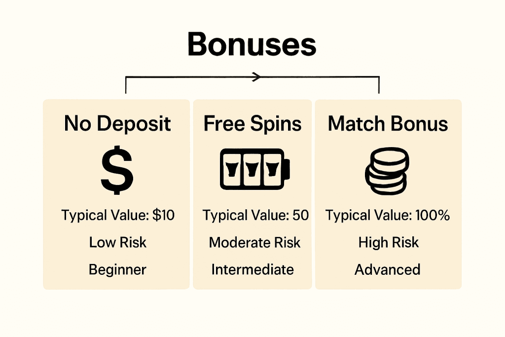 Comparing No Deposit, Free Spins, and Match Bonuses